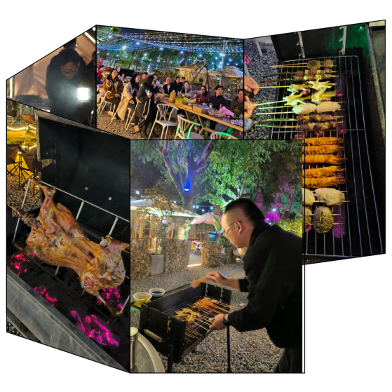 晚上我们进行了别开生面的年会活动。今年的年会活动我们选择在自然有趣的户外农场进行。大家一起惬意烧烤,感受热辣的烟火气;一起举杯,敬过往也敬未来;一起欢声笑语一起开心合影,留下一帧帧美好的回忆。夜色深沉,篝火燃起,飞腾的火焰驱赶了寒意,音乐、篝火、营造了温馨惬意的氛围,此时此刻,小伙伴们的笑容在火光中闪耀.....